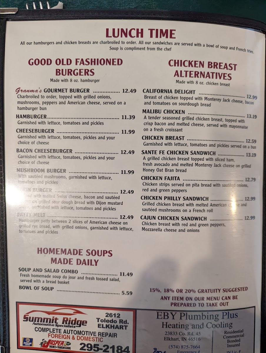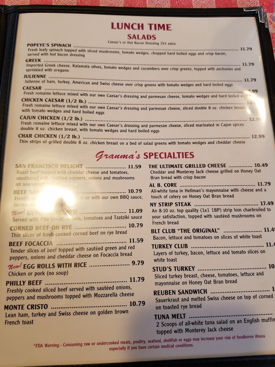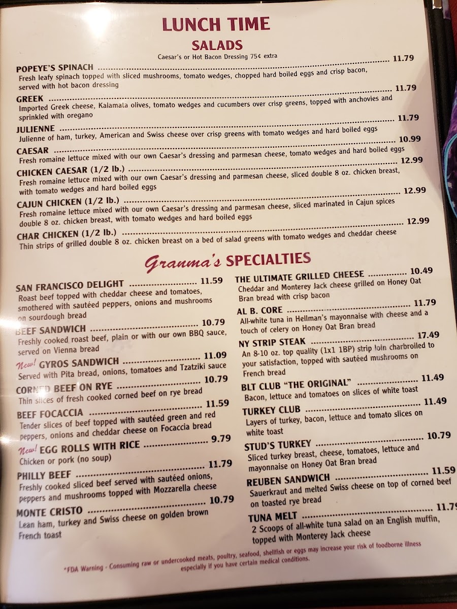 Highlights from the menu include the innovative Avocado Lotto, filled with fresh flavors and a hearty Chicken Delight that’s perfect for a satisfying meal. Vegetarians will love the diverse omelette selections, while fruit enthusiasts can indulge in fresh salads accompanied by cottage cheese. Granma's is not just a meal; it's a delightful gathering place where delicious food and warm service make every visit memorable.